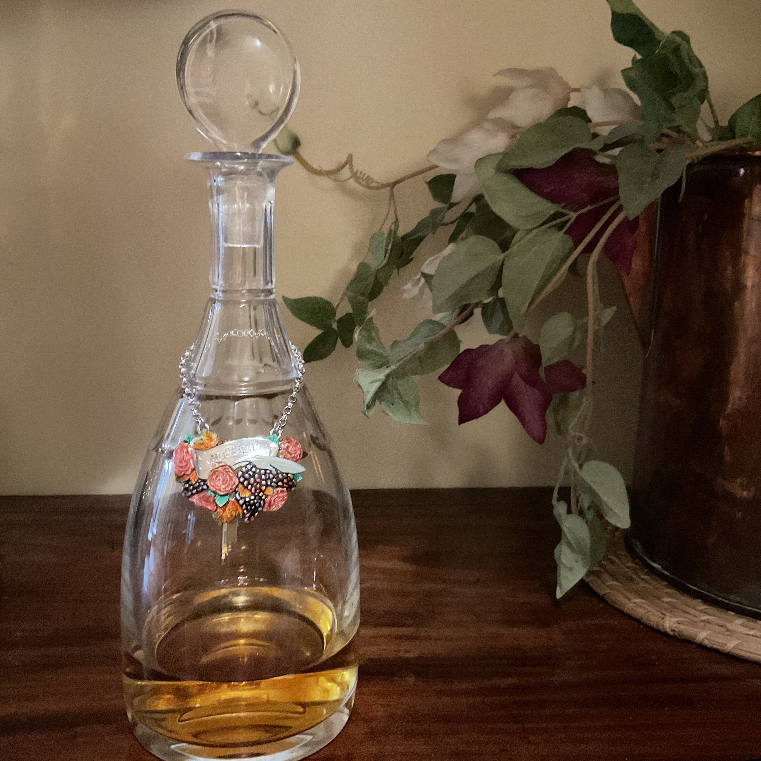 Silver and Enamel Saussignac wine label on decanter with Saussignac wine Published December 2, 2022 at 3024 × 3024 in Silver and Enamel Saussignac wine label on decanter with Saussignac wine Silver and Enamel Saussignac label by Jane Short MBE